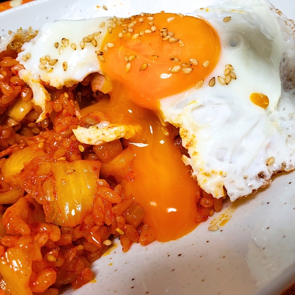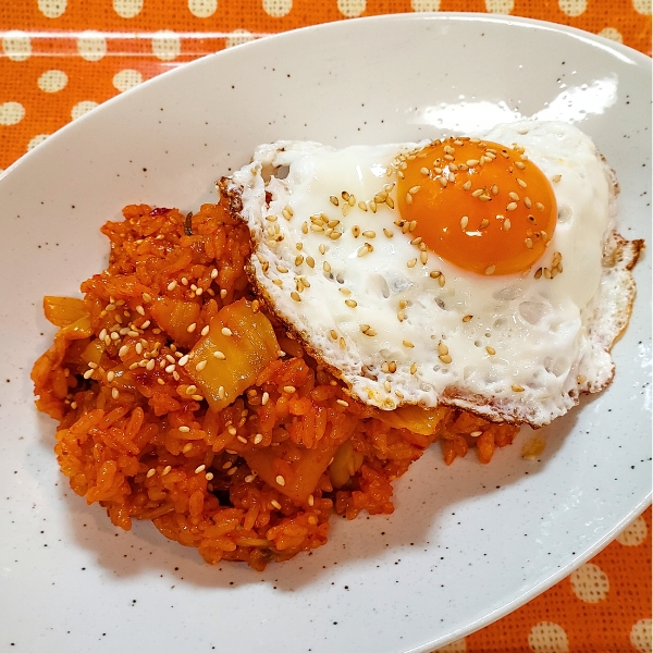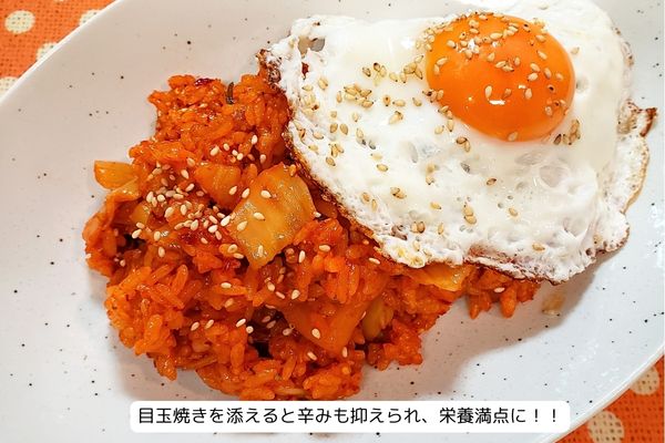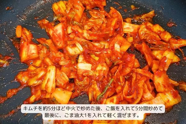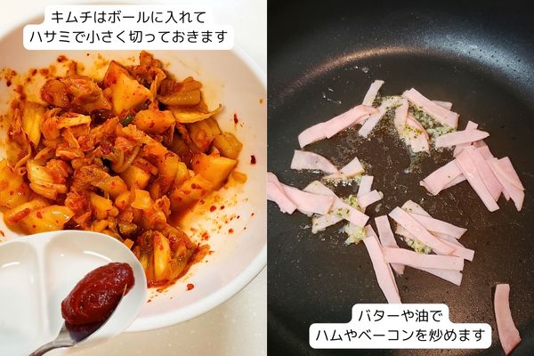 キムチが少ないときは、少しケチャップを加えると甘辛バランスが整います。